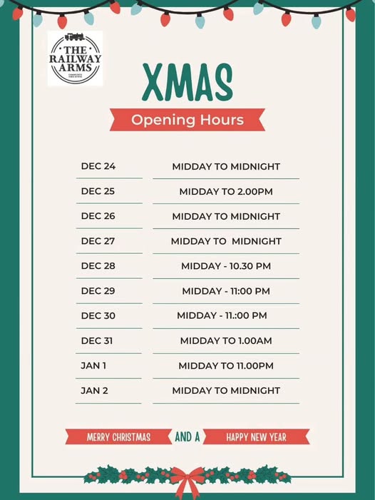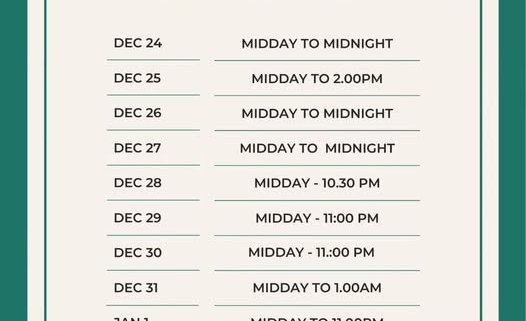 Xmas and New Year Opening Times